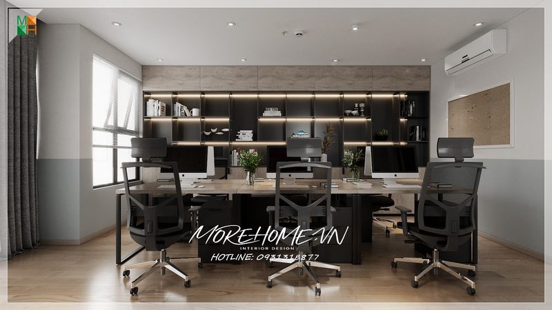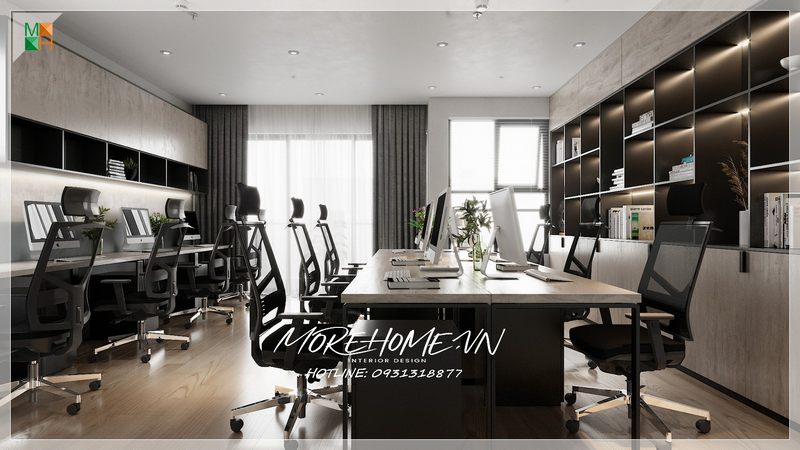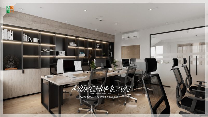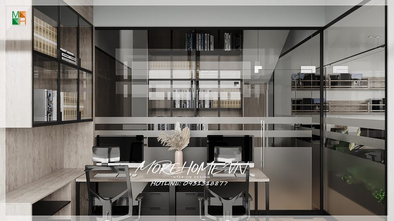 Phòng làm việc văn phòng với trang trí nội thất đơn giản phù hợp diện tích không gian đem lại sự gọn gàng khoa học trong sắp xếp bố trí đem lại sự thuận tiện trong quá trình làm việc