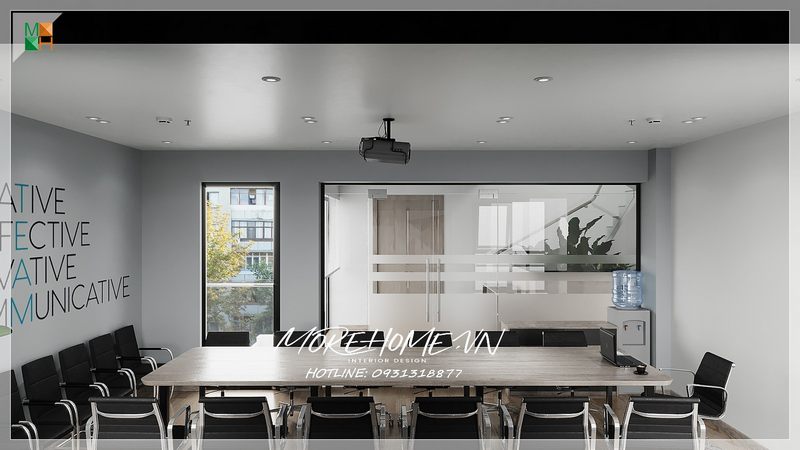 Thiết kế phòng họp văn phòng hiện đại trẻ trung với đồ nội thất đơn giản, tiện lợi