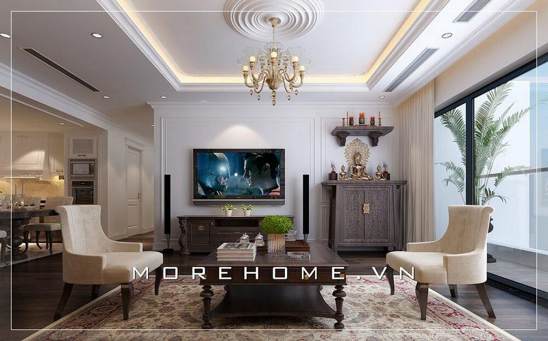 Mẫu tủ thờ chung cư đẹp được thiết kế theo phong cách hiện đại, trẻ trung mà không kém phần trang nghiêm và thành kính