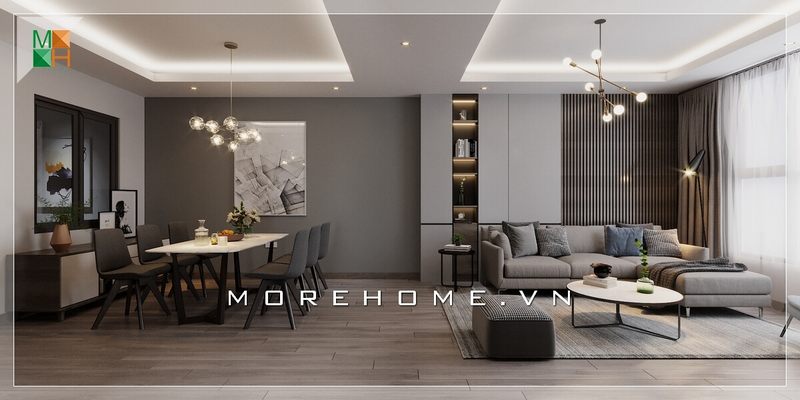 Mẫu thiết kế nội thất chung cư tiện nghi với tone màu ghi nhẹ nhàng và ấm cúng