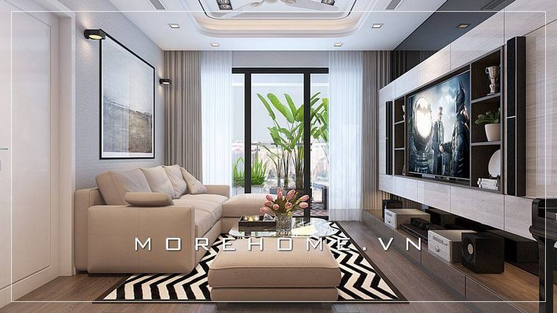 Thiết kế nội thất phòng khách chung cư hiện đại trẻ trung