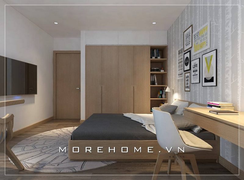 Mẫu nội thất phòng ngủ nhà phố nhỏ hiện đại được bố trí ngăn nắp, gọn gàng tạo sự thông thoáng, rộng rãi