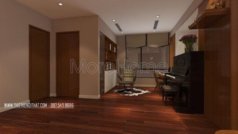 Cửa gỗ tự nhiên đẹp được sử dụng cho phòng khách của biệt thự Đông Anh tại Hà Nội.