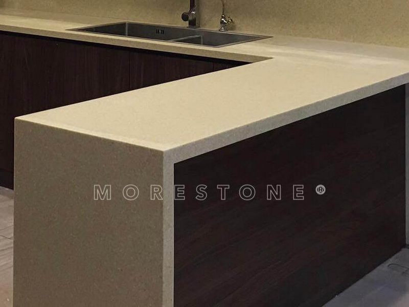 Ngắm nhìn mẫu thi công đá ốp bếp Himacs màu vàng nhạt sẽ tăng thêm độ sang trọng cho không gian bếp của các căn hộ, biệt thự, nhà phố.